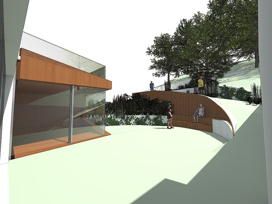 Het vertrekpunt was een origineel bijgebouw oprichten in houtstructuur om het privé-karakter van de tuin te versterken. Het project stelt een uitbreiding voor in rhomboïde vorm om het eigentijdse karakter van een modern huis te beklemtonen. De aanleg van de tuin is in dezelfde geest getekend.